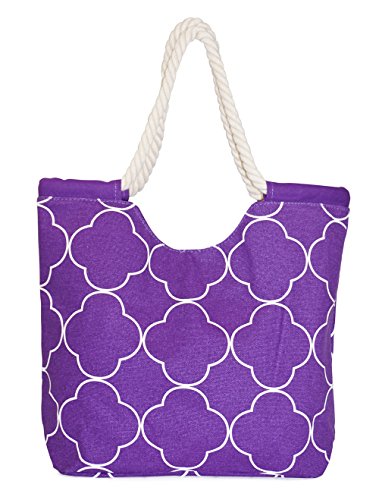 Product Description This stunning rope handled tote bag from Ever Moda brings fashion and function together in one fine product. The lightweight, yet sturdy canvas construction provides a durable tote with plenty of room for all your daily needs. The fabulous designer print is eye catching and the soft rope handle make carrying this lovely bag over the shoulder or by hand, a breeze. Not only is this bag perfect for everyday use but it's just the thing for a day at the beach, mall, sporting events, or any other event that requires a little extra room for your personal items. 0