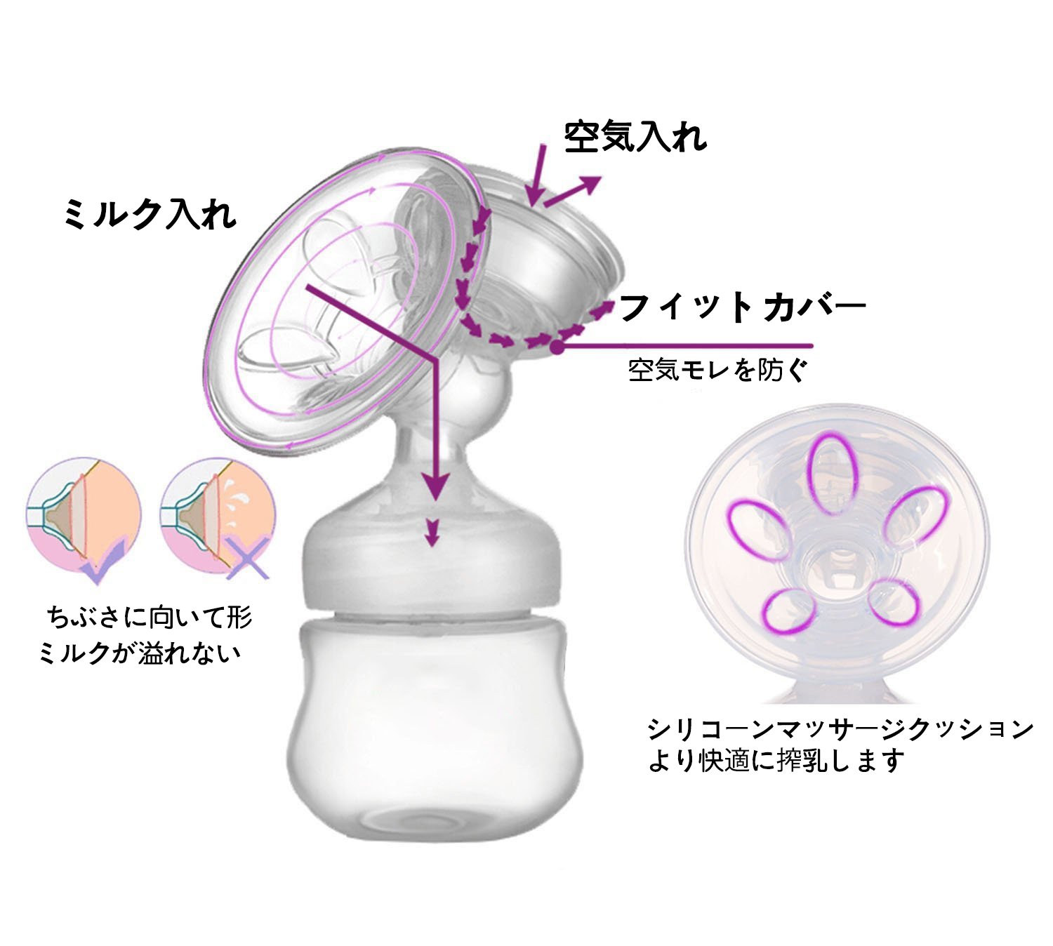 The silicone valve provides a soft, warm feeling, faithfully reproducing the rhythm that the baby drinks tits, the burden on the tits is less, pain can not be felt, it can be milked in a short time in a short time.