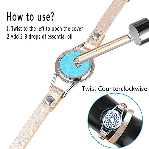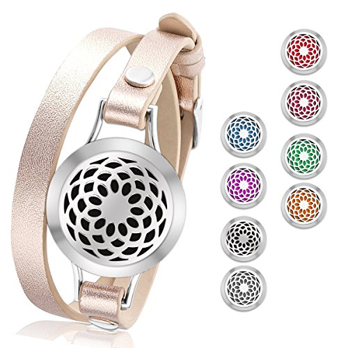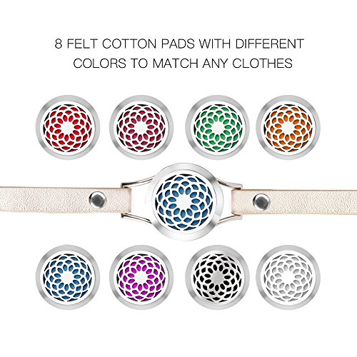 SHOPPING STORY - Essential Oil Diffuser Bracelet,Stainless Steel Aromatherapy Locket Bracelets Leather Band with 8 Color Pads,Girls Women...