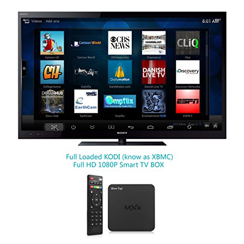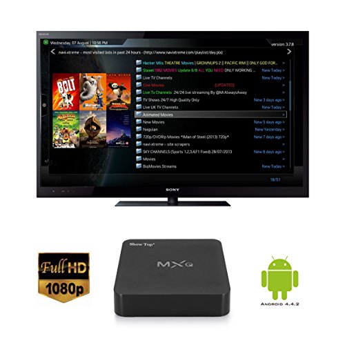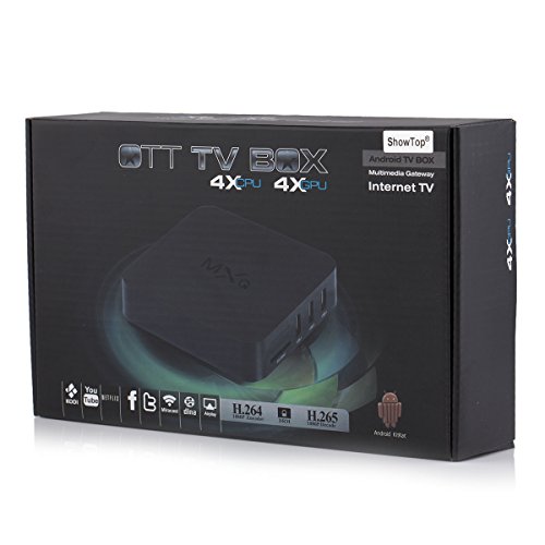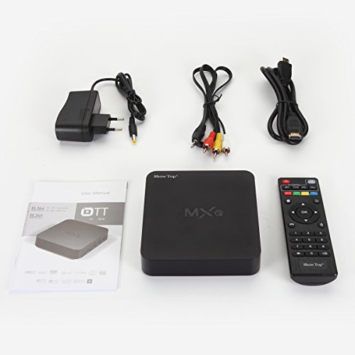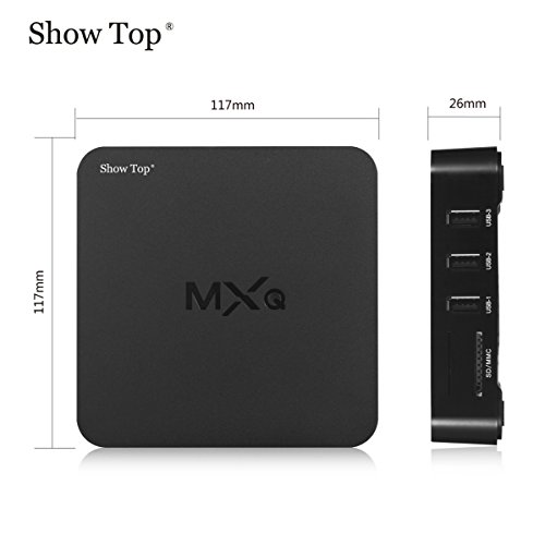 - Feature : Amlogic S805 Quad Core 4 x Cortex A5, Quad ARM Mali-450 GPU, 1.5GHz. MXQ The newest version of MX,Faster than the MX MX2 Dual Core TV BOX. Built-in DDR3 1GB RAM ,8GB ROM (Flash Memory), support external (max 64GB) micro sd card expanded, and USB hard drivers / Come with Android 4.4.2 Kitkia OS,XBMC/Google Play store is pre-installed;Support USB webcam works with Skype,QQ and HDMI supported. compatible with any TV (HDMI or AV(white-red-yellow cables)) or regular PC monitor with HDMI jack. Support 802.11B/G/N wifi / Video/Picture Decoding support H.265 HEVC MP a L4.1 up to 1080P a 60fps, Supports *.mkv,*.wmv,*.mpg, *.mpeg, *.dat, *.avi, *.mov, *.iso, *.mp4, *.rm and *.jpg file formats.Built-in wifi, you can download apps from the Google Play Store, watching videos, playing games, surfing the Internet / Comes with a remote/Charger/HDMI Cable/AV cable included.Converts Smart TV into Smart PC, or regular TV into Smart PC, Full Web Browsing, Picture Viewing, Social Networking, make free phone calls with Skype, online video chat, Play Vedio Games, and so on. Amazing for college dorms, bed rooms, home theaters, anywhere you need some entertainment / ShowTop MXQ is the absolute best and most versatile home media experience in the market. to share with friends, Your movies, TV Shows, Mofusic all at your fingertips. Online forums, tutorials, and videos are plenty. You want a TV media player to do exactly what you need and something less will just ruin the whole experience