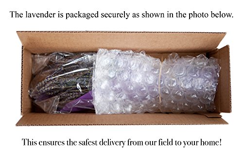 Shipping dried flowers so they arrive intact takes special care. We carefully wrap each bouquet with plastic, pack with bubble wrap and package protectors to prevent shifting in transit, then secure the packaged bouquet in its own box for maximum protection from our lavender field to your home. You can enjoy a lavender bouquet from Ketchum Hollow as beautifully as if you had stopped by in person! Please be aware that even though we have taken every precaution possible to ensure your lavender arrives intact, some buds may fall off during transit. This is normal, and these fallen buds can be stored in a cloth bag and used as a fragrant sachet.