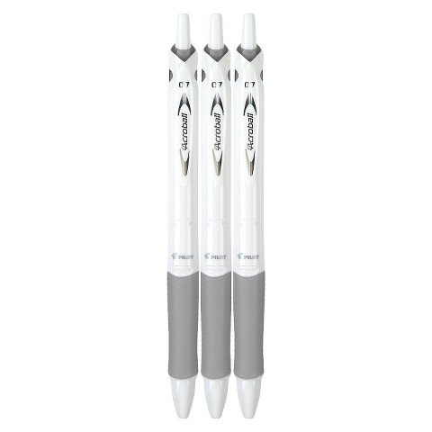 -. Title : Pilot Acroball Pure White Fine 0.7mm Vivid Ball Point Pens Black Ink (3 Count)