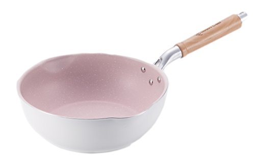 -. Title : 軽量型深型フライパン24cm 木製ハンドル Snow White × Misty Pink SWL-PM24DF
