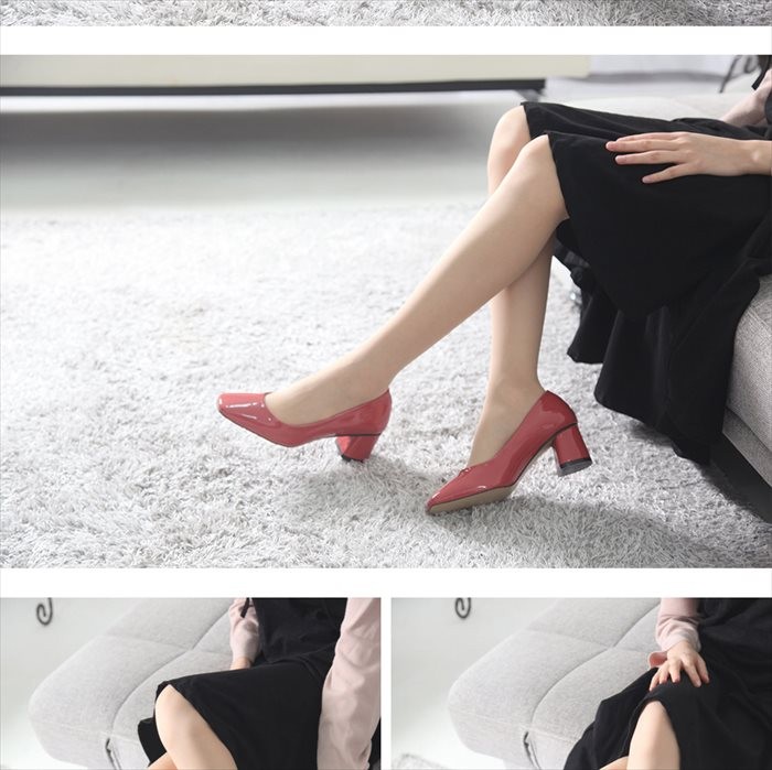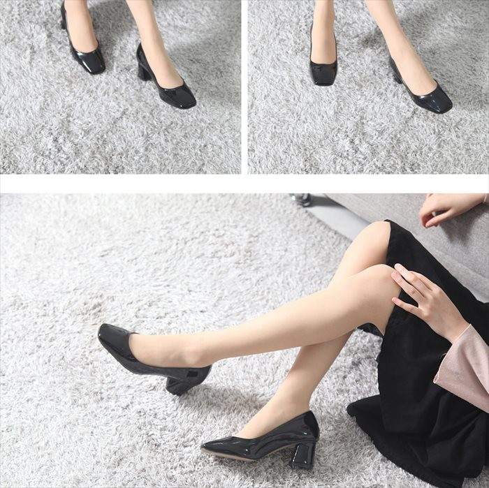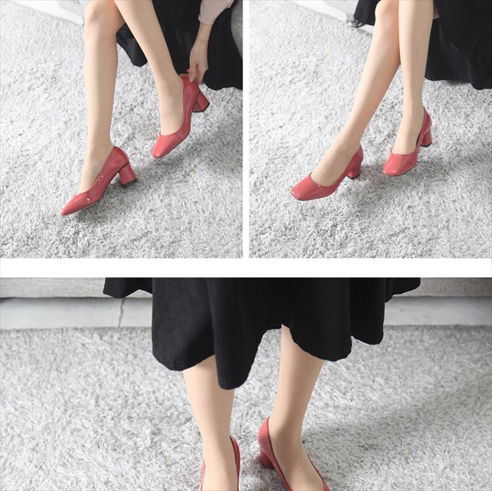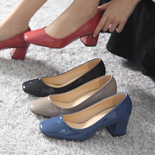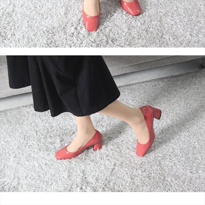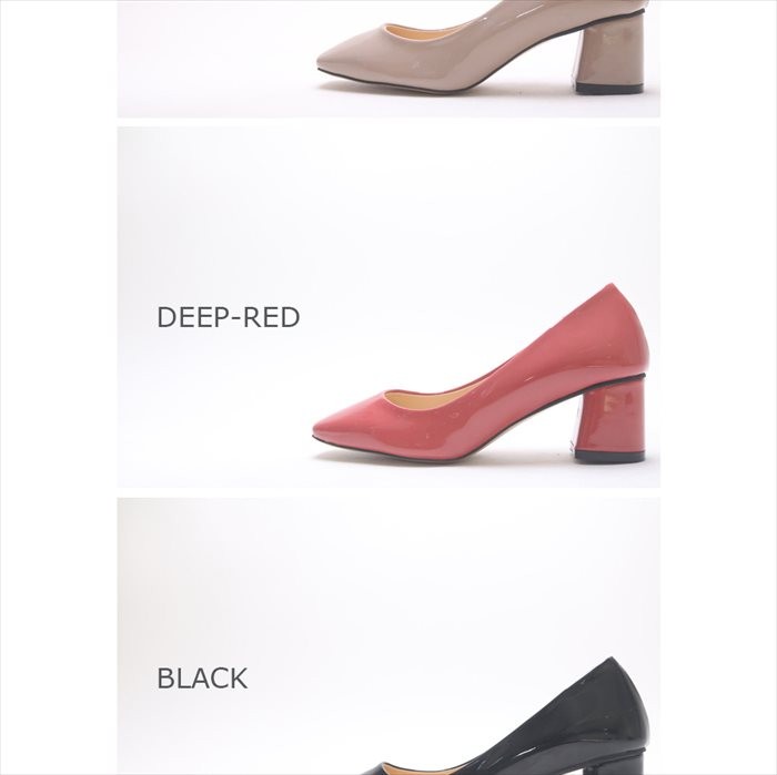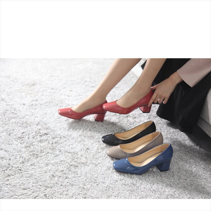 商品名:パンプス レディース チャンキーヒール エナメル調 太ヒール 2017 秋冬 ファッション 靴 婦人靴