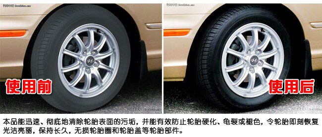 This product can quickly and thoroughly remove dirt surface of the tire, and can effectively prevent tire aging, cracking or fading, so bright and clean tire instantly restore, maintain long-term, non-destructive wheels and tires and other tire components cover.