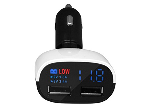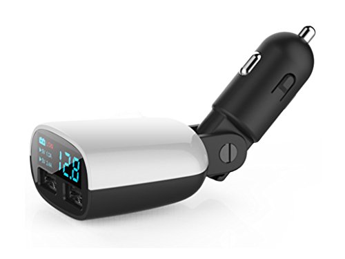 Actpe 3.4A Dual Port Rapid USB Car Charger, Cigarette Lighter Voltmeter with LED display Out/ Input Voltage & Car's Battery for iPhone Samsung Android Cell Phone & All USB Device - Low Battery Alarm