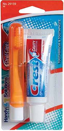 -. Feature : Oral Care Travel Kit with Crest Toothpaste & Folding Toothbrush (48-count case) On-the-go oral care with Crest toothpaste and folding toothbrush Combo toothpaste & toothbrush travel set Case of 48 travel sets Blistered & peggable / Case Pack 48 Please note: If there is a color/size/type option, the option closest to the image will be shipped (Or you may receive a random color/size/type).