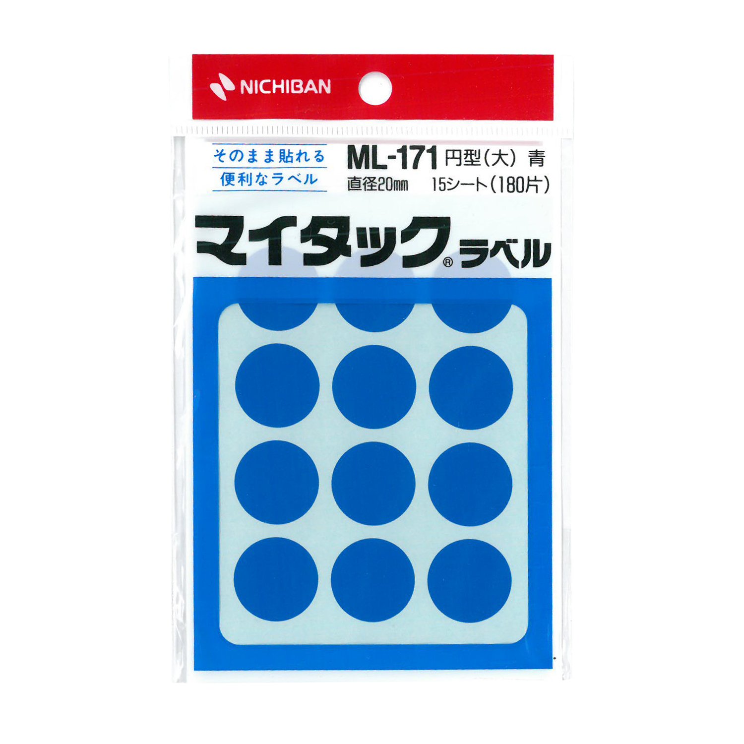 【サイズ】直径20mm 【入数】12片×15シート(180片入) 【基材】上質紙 【粘着剤】アクリル系 【ご注意】プリンタは対応してません。