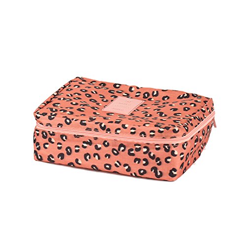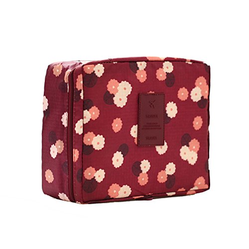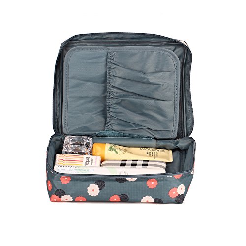 What can be put in this cosmetic bag (toiletry bag)? - There is a roomy main compartment in the bottom stores cosmetics, toting makeup, hair accessories, shaving tools and other travel stuffs; and you can put some long make up tools sets ( eyebrow pencil ) and other easy to drop out items in the middle removable pocket; for the topmost, you can put some little things ( lipstick )
