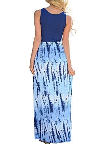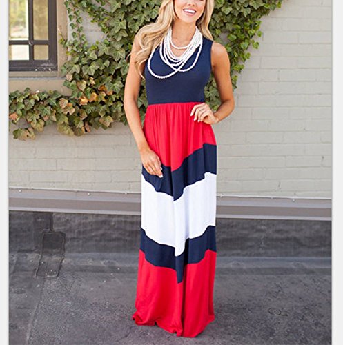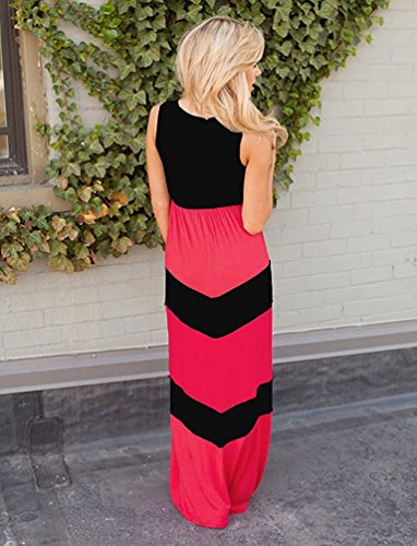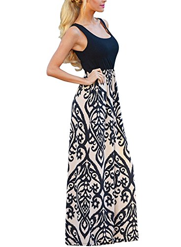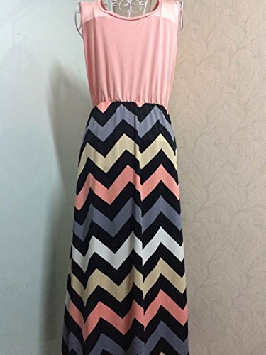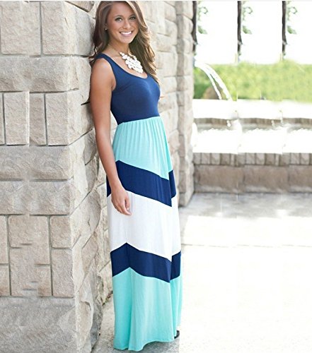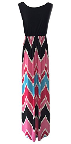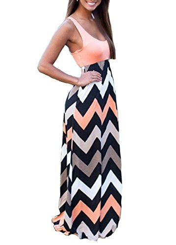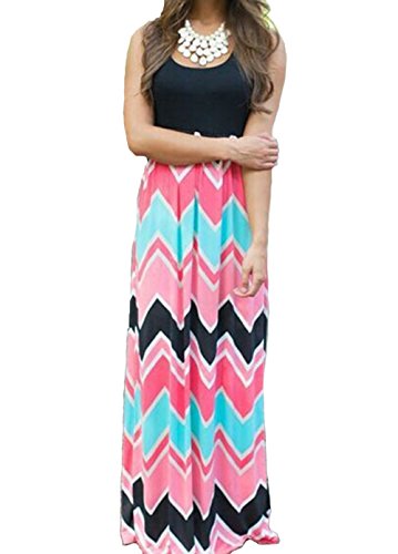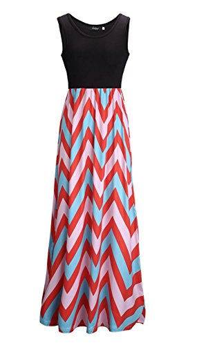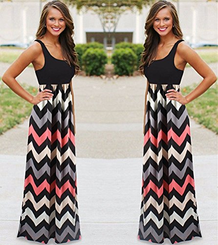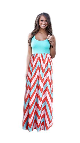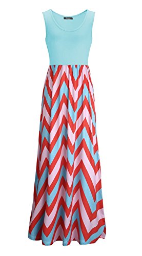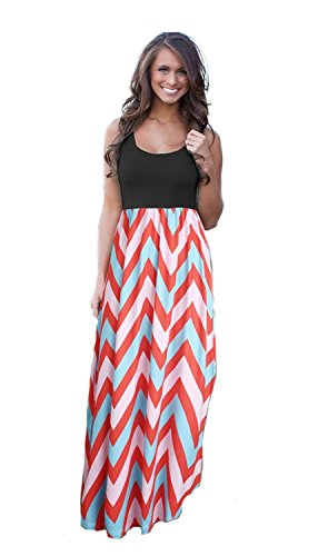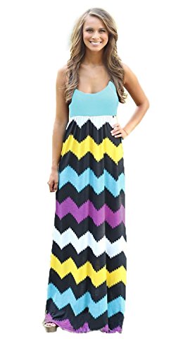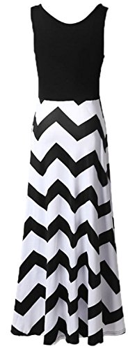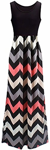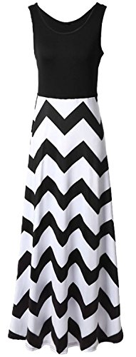| Shangke Womens Zig Zag Scoop Neck Wave Striped Tank Maxi Long Dress |