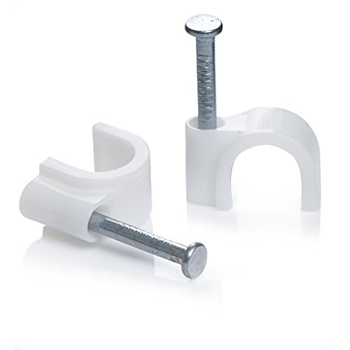 Round Plastic Cable Clips - Round Plastic Cable Clips Protects Insulation and are Weather Resistant, Impact Resistant & Non-Corrosive Complete with Corrosion Resistant Hardened Nails for Securing Cable to Wood, Cement, Plaster, Brick, etc.