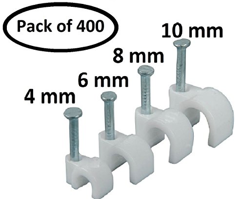 PARTH IMPEX Round Cable Wire Clips 4mm 6mm 8mm 10mm (Pack of 400) Cable Management RG6 RG59 CAT5 CAT6 RJ45 Electrical Ethernet Dish TV Speaker Wire Cord Tie Holder Single Coaxial Nail Clamps