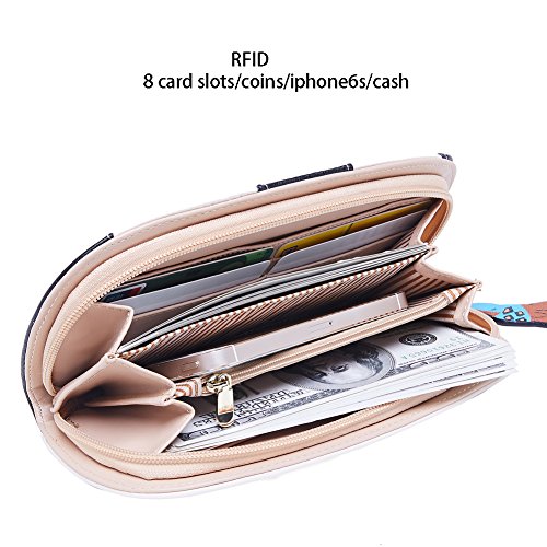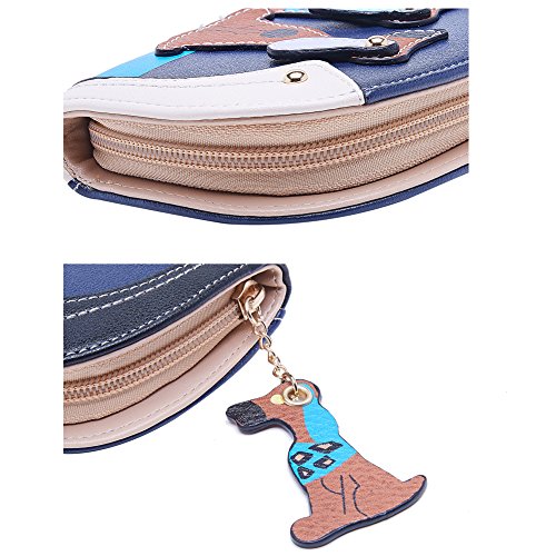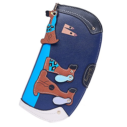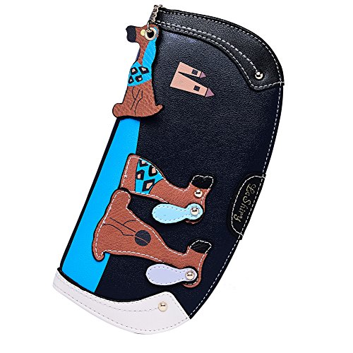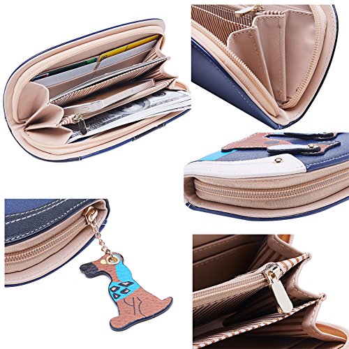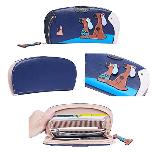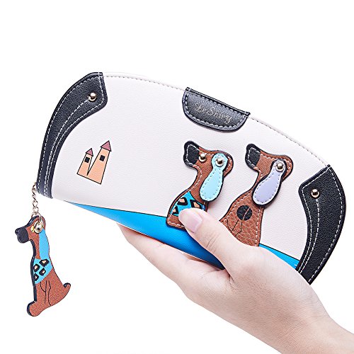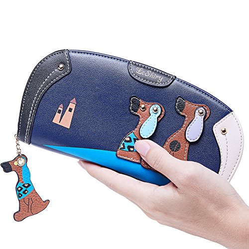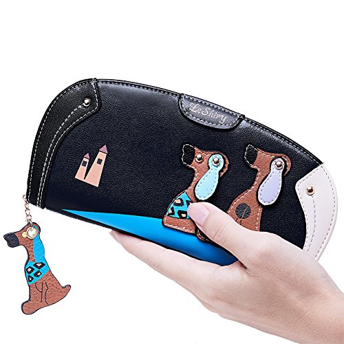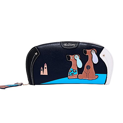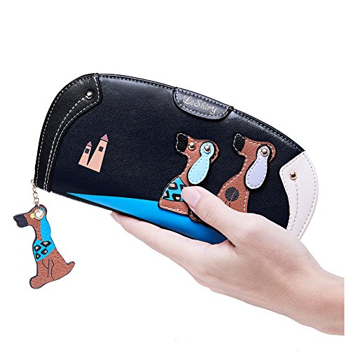 Perfect gift souvenir for teen girls/mother/wife/girl friend. RFID Blocking Chic fashion adorable design with puppy dog decoration. 2 main compartments for cash8 card slots ,1 coins metal zipper pocket.Can hold hold 4.7inch Iphone 6/6s/7 Mainly made with good handfeel smooth surface PU leather Light and slim,easy bring and put in your bag Standard size design for USD cash. Basic Information: Main Material:Synthetic leather Size(L*W*H):20*10*3cm weight:0.2kg Lining Material:Stripe cotton Brand:Leshiry Color:black/pink/navy/beige Package: 1*wallet in polybag