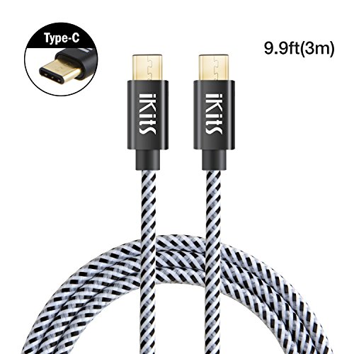 USB Type Cable, C-C Cable , ikits (3M/9.8ft) Braided USB 2.0 Type C (USB-C) to Type C Data Charging Cable(3A), for New Macbook, Chromebook Pixel, Nexus 5X/ 6p, Lumia 950/ 950XL & more