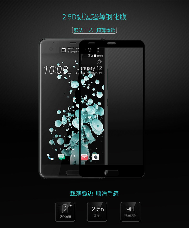Full coverage Tempered glass  HTC  U ultra、HTC  U play