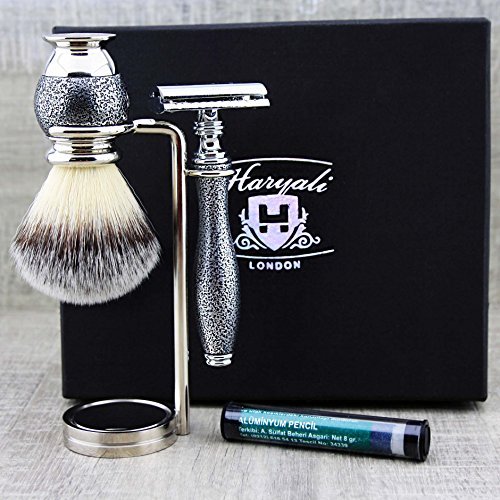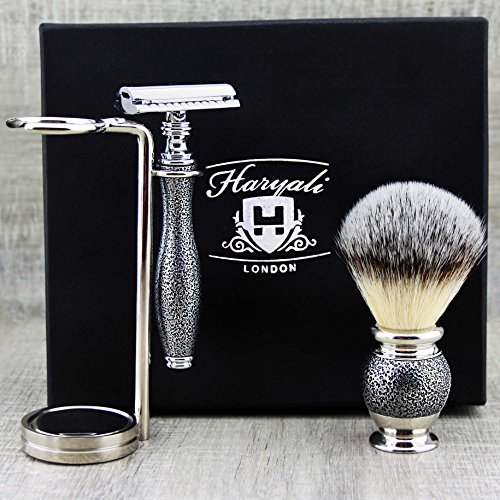Vintage Look Shaving Set | Men's Grooming Essentials >Synthetic Brush, DE Safety (Blades NOT Included) & Dual Stand