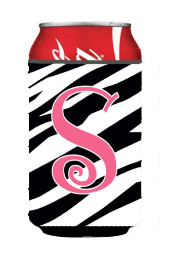 Letter S Initial Monogram - Zebra Stripe and Pink Can or Bottle Beverage Insulator Hugger