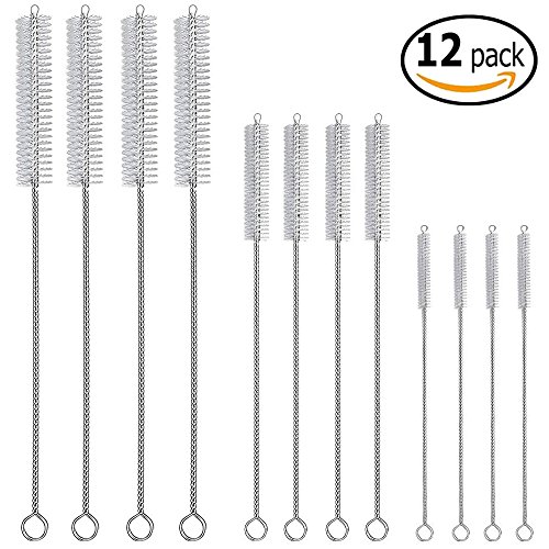 - The length of drinking straw brush kit: 12'', 10'', 8'' and the bristle diameters: 12mm, 9mm, 6mm. These straw cleaners are perfect to clean each size straws and pipes you have (including plastic straws, glass straws, stainless steel straws, smoothie straws, silicone straws), also they would not scratch the insides.