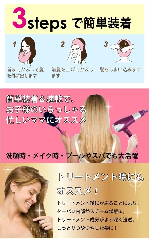 リッチな毛足でプレミアムなリボンチューブ。マイクロファイバーで濡れ髪速乾!ドライヤー時間も削減!3ステップで簡単装着。