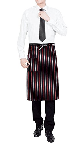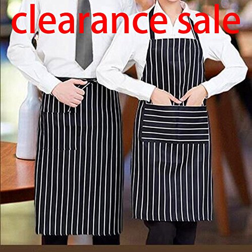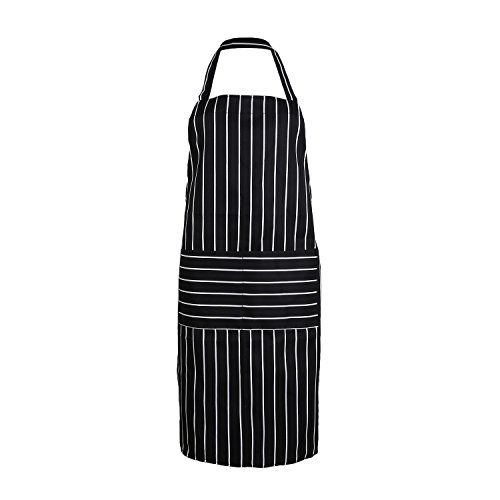 Chef Aprons with Pockets, Sunkni 2 Pack Bib Aprons for Men Women Cooking Baking, Commercial Grade, Black White Pinstripe