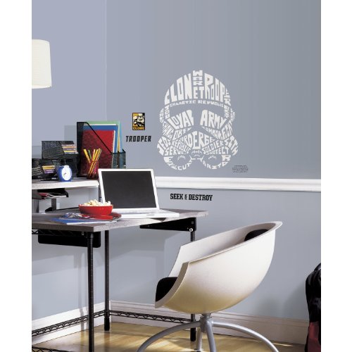 Studio : RoomMates Publisher : RoomMates Binding : Tools Home Improvement Product Description This clever wall decal of a Clone Trooper will give any room a stylish Star Wars twist. Celebrate your favorite films in style with this graphic on any wall or flat surface. Application is easy: simply peel each pre-cut element from the sheet and stick it up on your surface of choice. Need to make a change? No problem: just peel it away and stick it somewhere else. The decals will reposition easily without damage or residue. A great gift for any Star Wars fan. 0