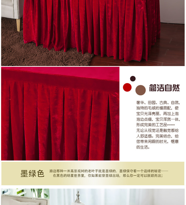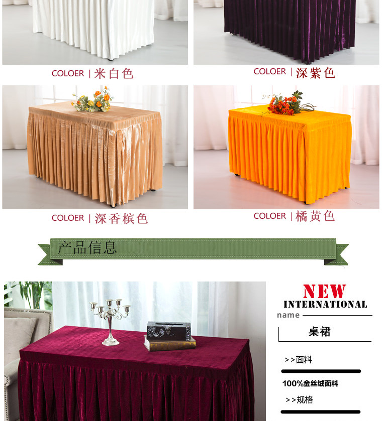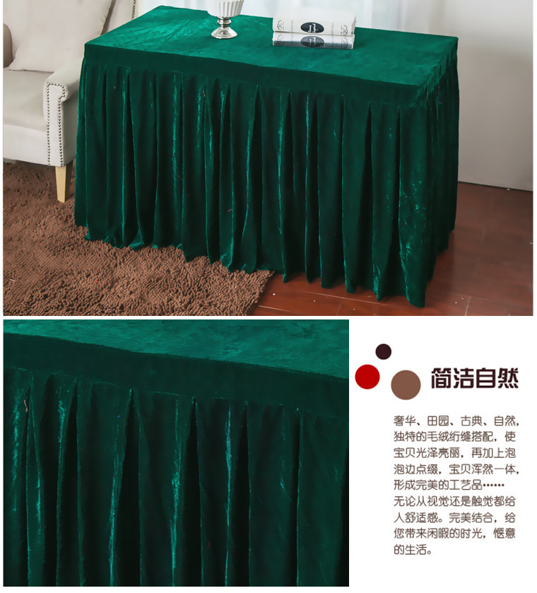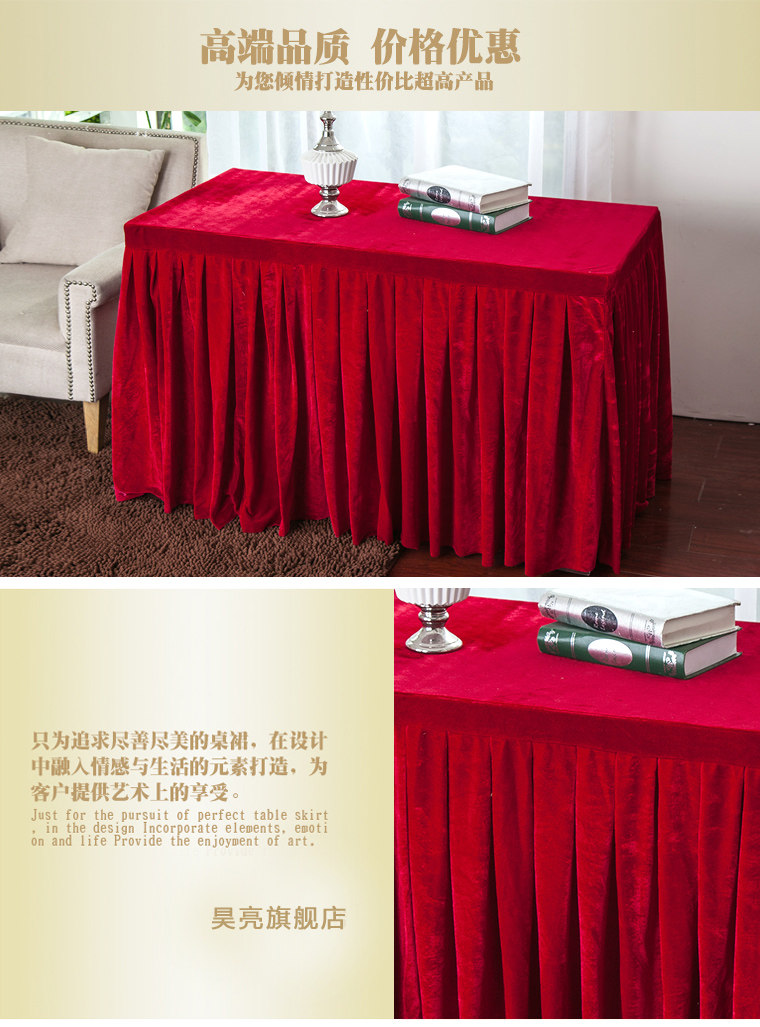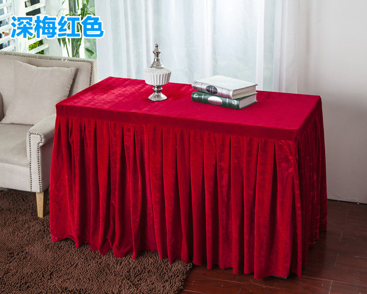 󰄬定做会议桌布办公台裙红色丝绒长条桌套罩签到活动展台布冷餐桌裙