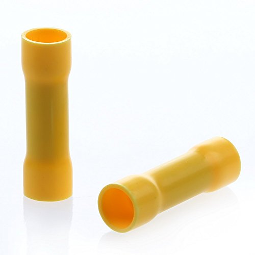 AIRIC 100pcs Yellow 12-10 Gauge Vinyl Insulated PVC Butt Splice Wire Crimp Connectors