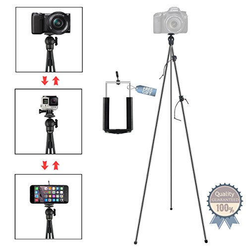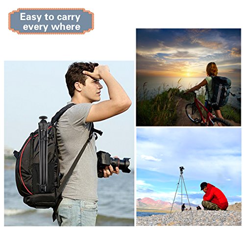 ✔ Made Of High Quality Aluminumit: Constructed of sturdy, high-quality aluminum with a heavy-duty plastic material ball-head, it can will hold a DSL camera with lens attached (up to 2.25 lbs. total weight). Compatible with any camera with a standard tripod mount, such as a Mirrorless camera with lens attached, point & shoot camera, most camcorders and Smartphone as well.