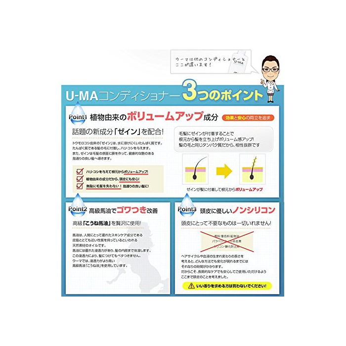 두피에 관해서도 안심!의 U-MA컨디셔너.머리의 파《사》부《고와》부를 개선 하고, 한층 더 볼륨감 업!
