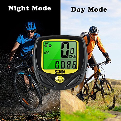 - Large LCD display -- The cycle computer is designed with the green backlight, LCD digital display. And our cycle computer is turned in either day or night mode to guarantee you can read your statistics easily at any time. Big LCD display with big numbers, easy to read the digits even you are riding.