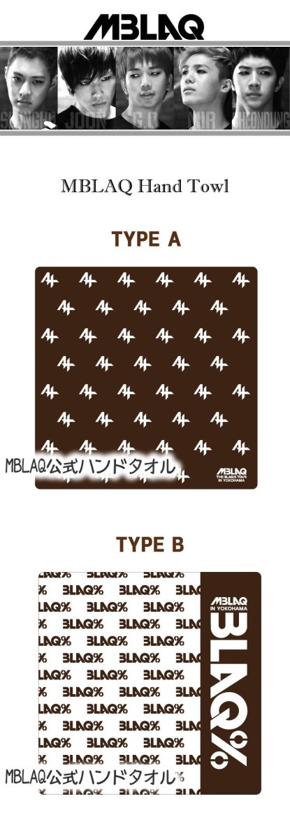 MBLAQ(エムブラック) - Music Boys Live in Absolute Quality - 他にない最高なクオリティでパフォーマンスするボーイズという意味を持つ。 MBLAQは、2009年10月9日•10日に開かれたソロ歌手RAIN(ピ)の公演オープニングステージに上がり、その姿を初めて披露した。そして同年10月14日にファーストシングルアルバム『JUST BLAQ』が発売され、オン・オフラインのチャートで1位を占めるという勢いを見せた。 グループでの活動のほか個人での活動も目覚しく、ドラマ・ハリウッド映画・バラエティー番組などあらゆるメディアで活躍。 2011年5月4日に『Your Luv』で日本デビュー。 オリコンデイリーチャート1位、ウィークリーチャートでも2位を獲得。 リリースイベントでは約46,500人を動員し日本でも大注目を浴びた。