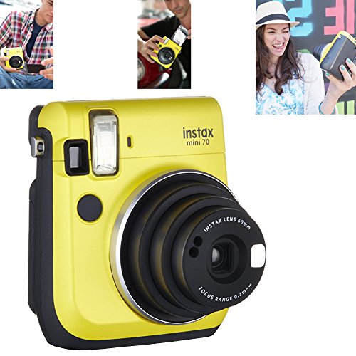 instax mini 70 is the step-up model to the Mini 8 and offers a more advanced feature set, including, an updated camera design, improved picture quality, especially in dark scenes, new selfie mode with selfie mirror and a tripod socket. Users can press the selfie button when shooting, so that the camera can automatically adjust the focal length and brightness to the level optimized for selfie shots. The selfie mirror beside the lens is useful to check the framing to achieve the best angle. Other convenient shooting features include the 'Self-timer' for group shots, 'Macro' mode for close-up shots at a minimum of 30cm from the subject, and the 'Landscape' mode for landscape pictures.