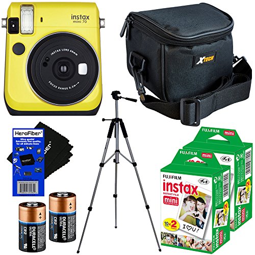 This kit includes 7 items; Fujifilm Instax Mini 70 Instant Film Camera, 2 Fujifilm Instant Color Film Packs (total 40 sheets), Full Sized 57" Tripod with 3-Way Pan/Tilt Head & Carrying Case, 2 pack CR2 Lithium Replacement Batteries, Xtech Well Padded Camera Case with Pocket & Strap, HeroFiber® Ultra Gentle Cleaning Cloth