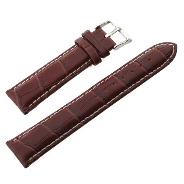 [해외]22 미리메터 20 미리메터 18 미리메터 줄 갈색 핀 버클 팔찌 정품 가죽 시계 밴드 여성 사이즈 화이트 스트랩 시계 시계 남성