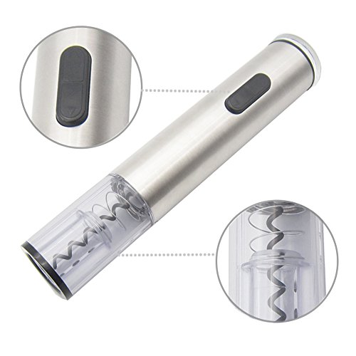 Haomacro Stainless Steel Battery Operated Electric Wine Opener Corkscrew Set With Foil Cutter (Silver)