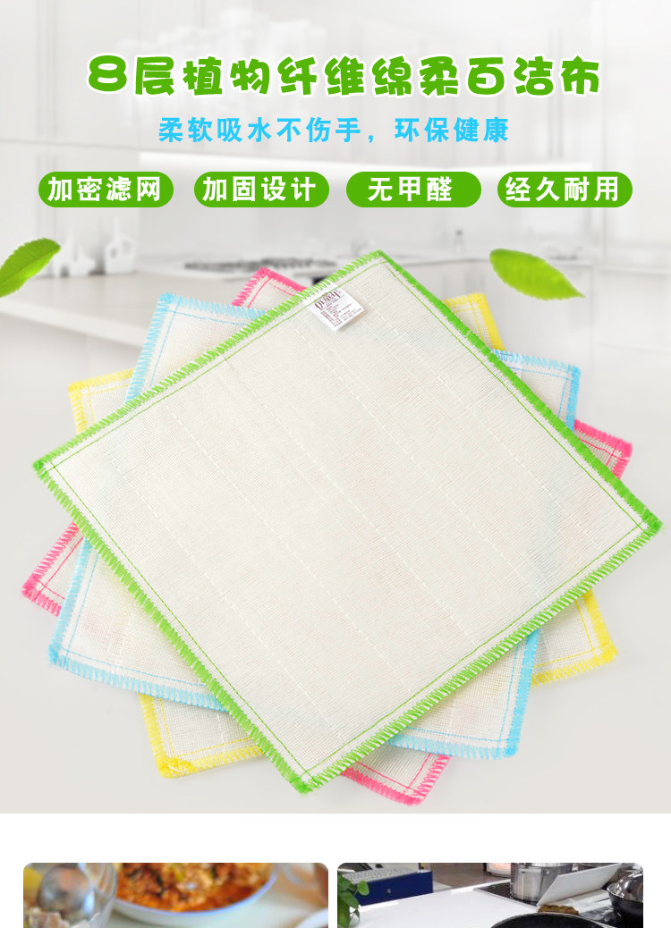 8层纯棉纱洗碗布不沾油厨房抹布吸水不掉毛加厚清洁巾去污百洁布