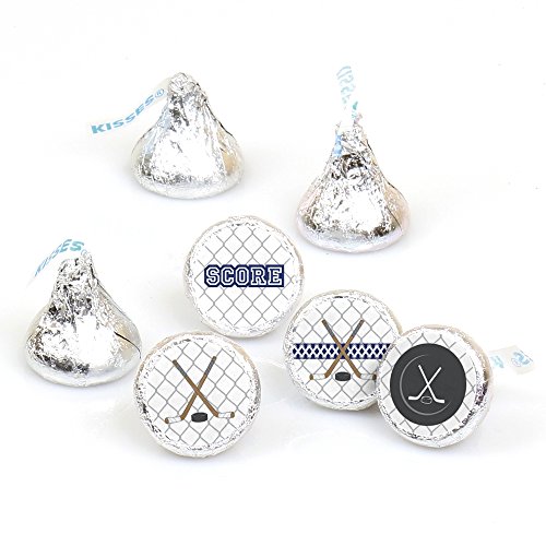 Shoots & Scores! - Hockey - Baby Shower or Birthday Party Round Candy Sticker Favors - Labels Fit Hershey’s Kisses (1 sheet of 108)