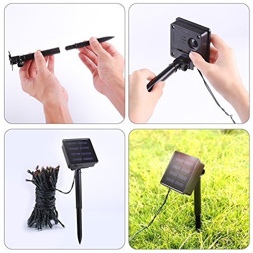Easy Installation. What you need to do is insert the solar panel part with stake into ground where can get enough sunlight during the daytime, and install the string lights where you desire to decorate your garden or home