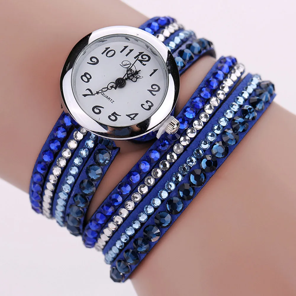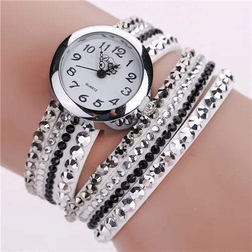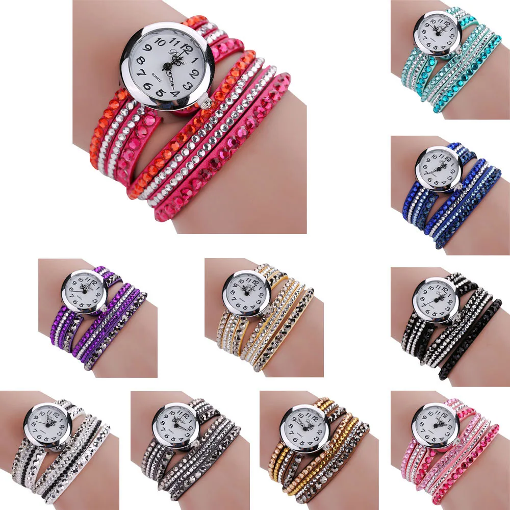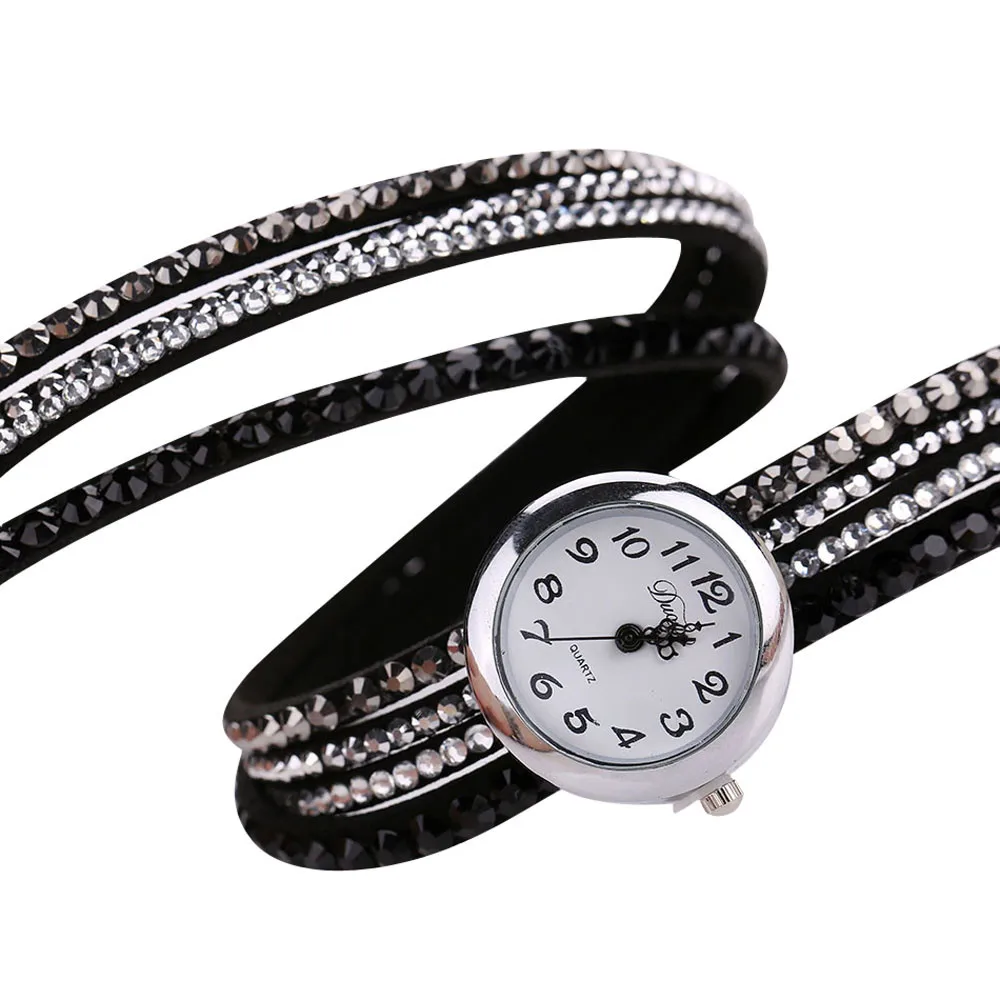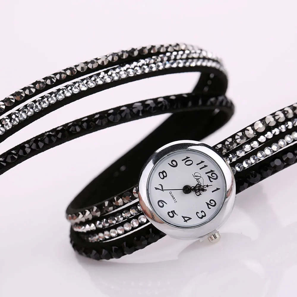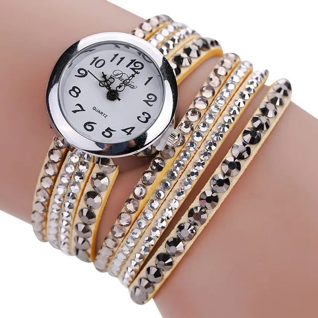 | [해외] 2016 브랜드 Duoya 세련된 미니멀 가죽 패션 여성 시계 모조 다이아몬드 팔찌 시계 Montre 팜므 Relojes Mujer |