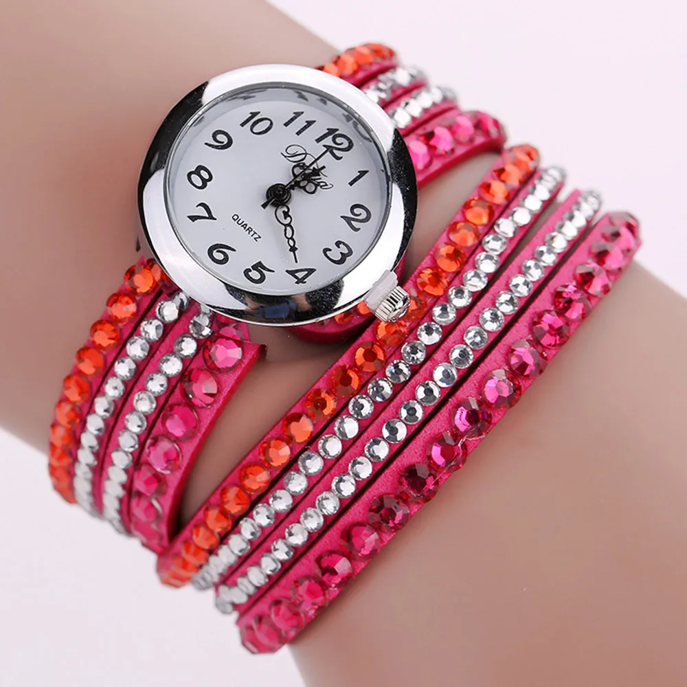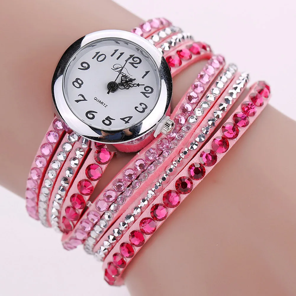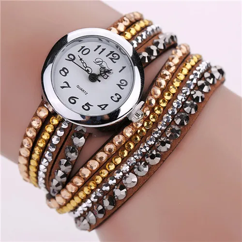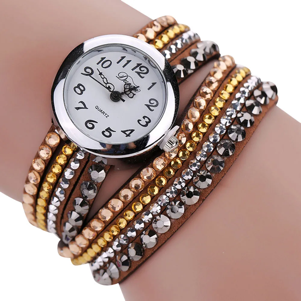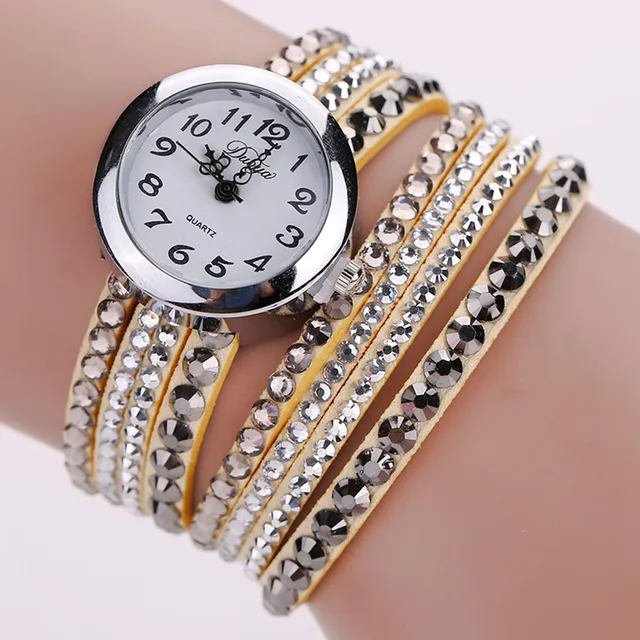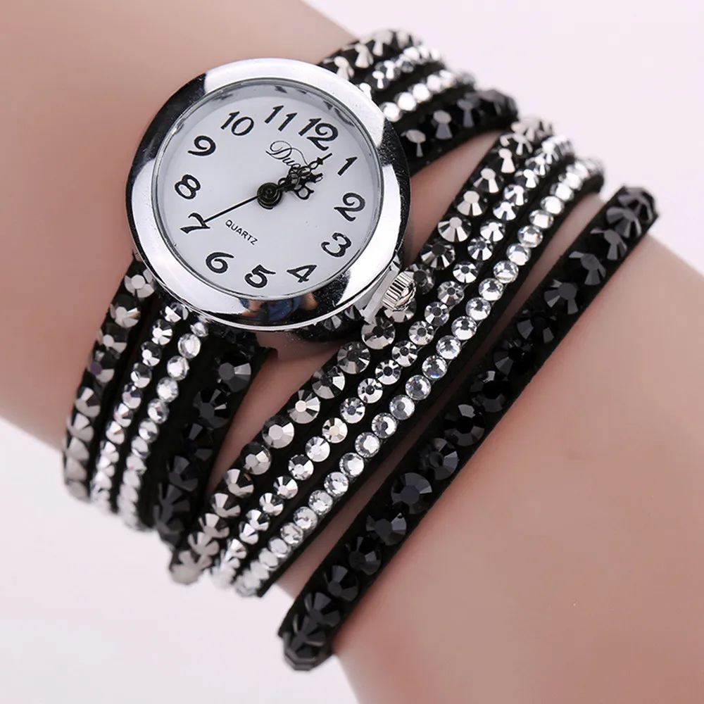 | [해외] 2016 브랜드 Duoya 세련된 미니멀 가죽 패션 여성 시계 모조 다이아몬드 팔찌 시계 Montre 팜므 Relojes Mujer |