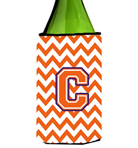 Letter C Chevron Orange and Regalia Wine Bottle Beverage Insulator Hugger CJ1062-CLITERK