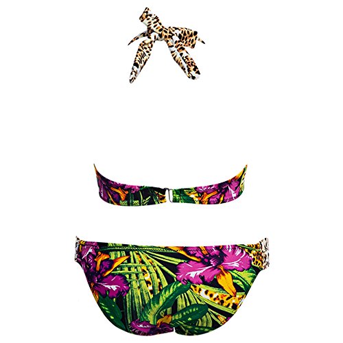 -. Title : Sexy Ladies Halterneck Leopard Floral Lacing Swimsuit