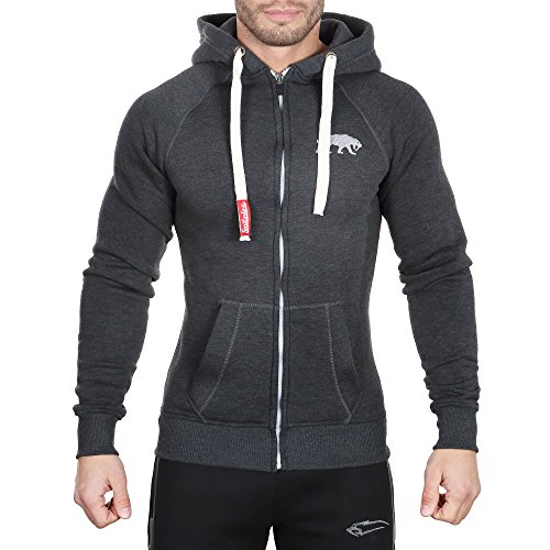 SMILODOX Smilodox Herren Slim Fit Sweatjacke, Mehrfarbig(Anthrazit/Grau), Gr. Medium