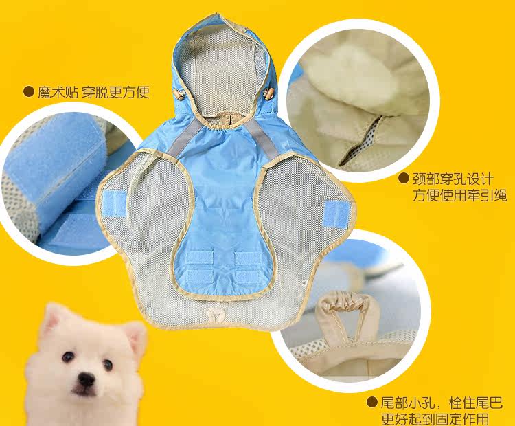 In the design, by the end of 2008, the famous Japanese brand senior designer raincoats asuku base has re-launched version of the luxury fashion stretching deformation pet raincoat, which is now finalized the finished product in Japan by the pet industry like! And the material does not add any chemicals, many parents worry that say there is damage to the skin color of the dog, if it is generally inferior product, then the addition of a large number of chemical pigment, a water, over time it will stick in the dog the dog's hair, but also a serious fade!