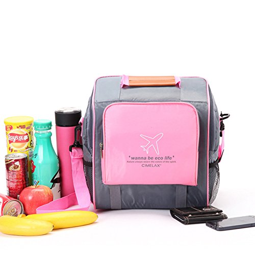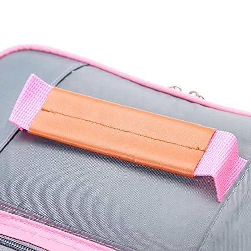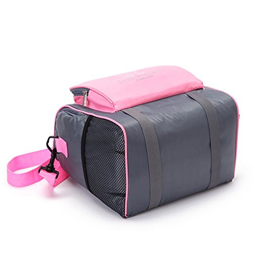 Insulated Lunch Bag – Stain Resistant Nylon, 4 Compartments, Non-Toxic Liner, Smooth Zippers, Padded Grab Handle, Adjustable Detachable Shoulder Strap (Pink)