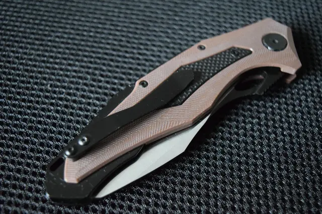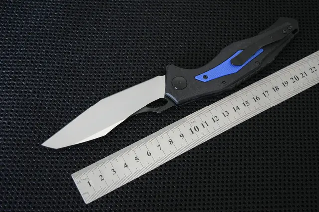 제품 정보: 유형: 접는 칼 전체 길이: 24.2 센치메터 블레이드 길이: 9.8 센치메터 핸들 길이: 14.4 센치메터 블레이드 폭: 2.7 센치메터 블레이드 두께: 0.38 센치메터 블레이드 재질: 9CR18MOV 핸들 재질: 스틸 + G10 경도: 58HRC 무게: 220 그램 표면: 새틴 사진