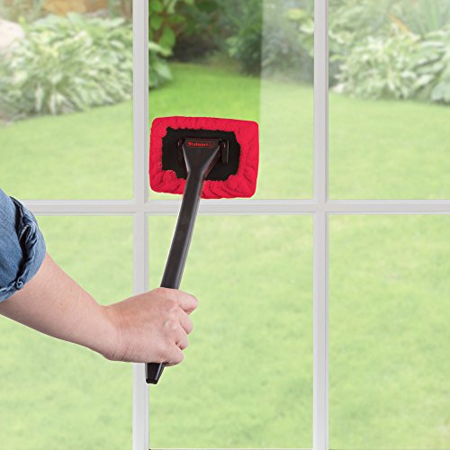 -. Title : Windshield Cleaner with Microfiber Cloth, Handle and Pivoting Head- Glass Washer Cleaning Tool for Windows By Stalwart Red