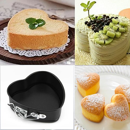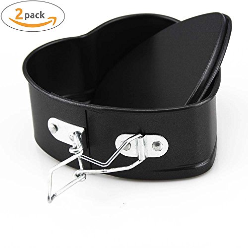 ZPFAMILY 2 Pack Heart Shape Cake Pan,4.5 Inches Springform Bakeware Pan Non-stick Cake Pan Leakproof Cheesecake Pan Mould Baking Tools with Removable Smooth Bottom and Quick-Release Latch 2 Pcs