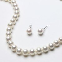 -. Title : パール ネックレス 花珠 シェル パール ピアス セット 8mm ホワイト 日本製 みがき貝パール