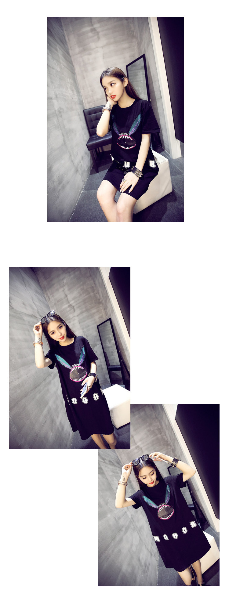 韩版孕妇装夏装短袖卡通怪兽宽松孕妇连衣裙中长款上衣T恤夏